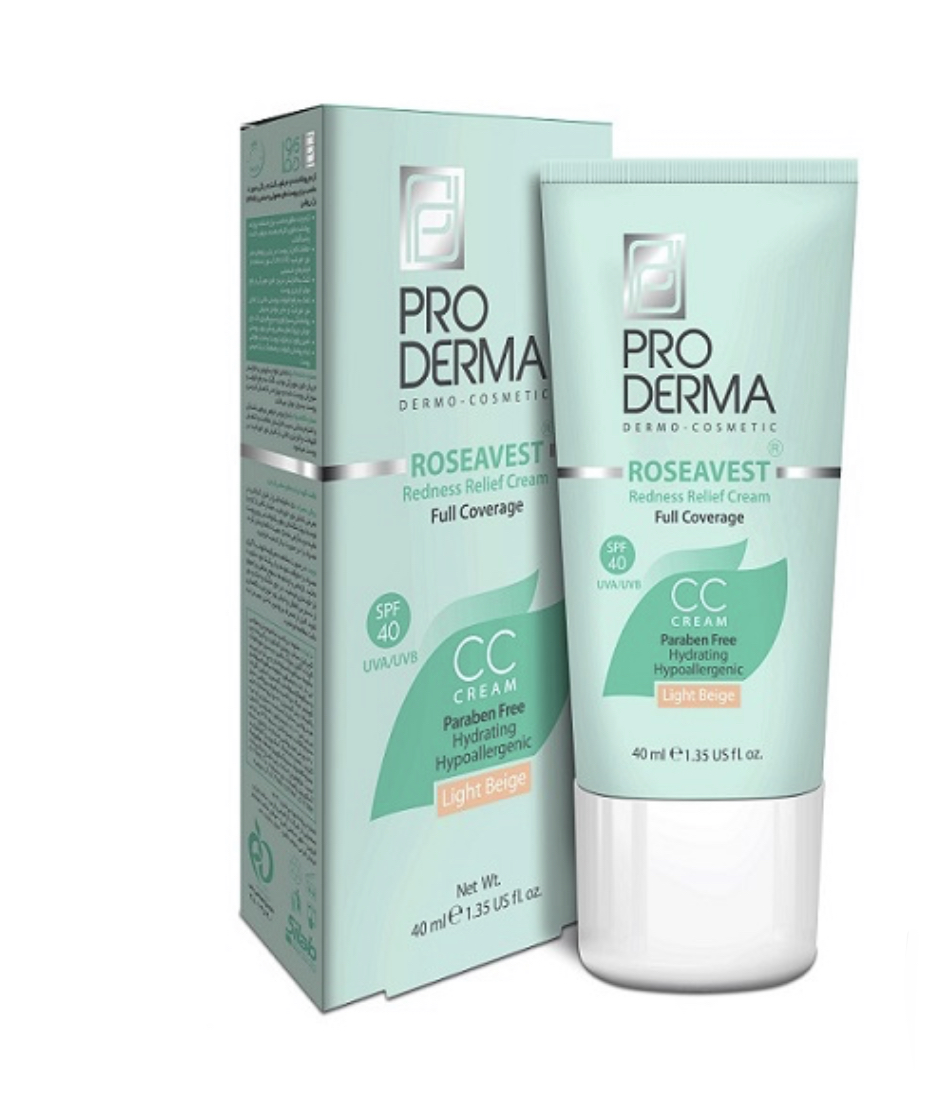 کرم پوشاننده و مرطوب کننده صورت CC cream پرودرما PRO DERMA ROSEAVEST REDNESS RELIEF CREAM